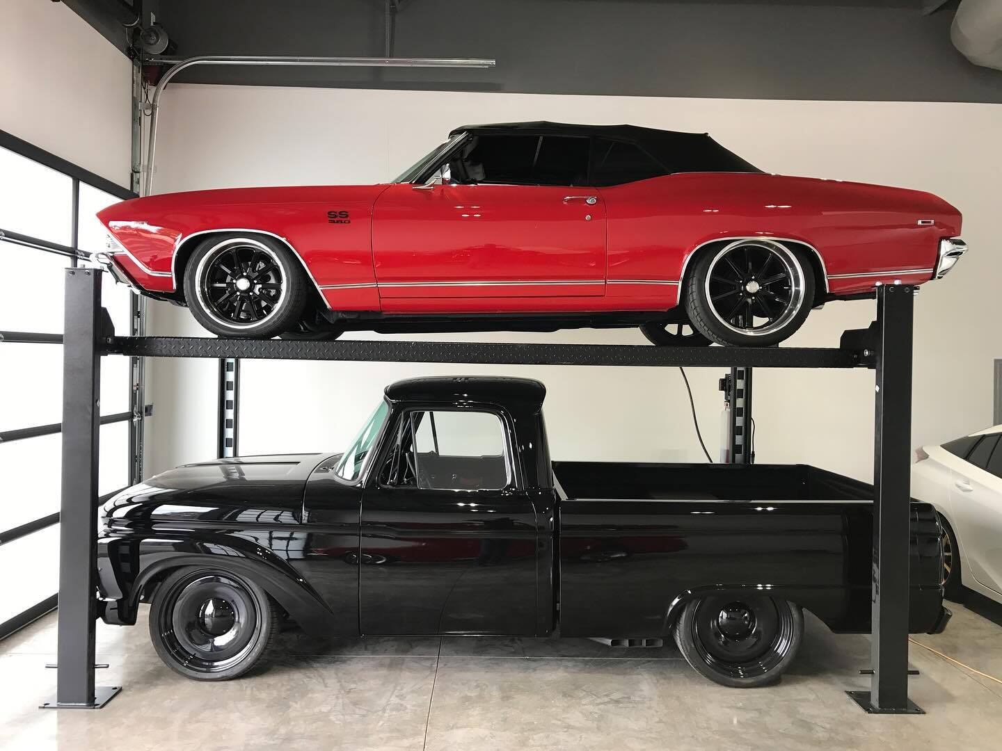 Four-post lifts provide drive-on convenience and are popular for parking and storage use.