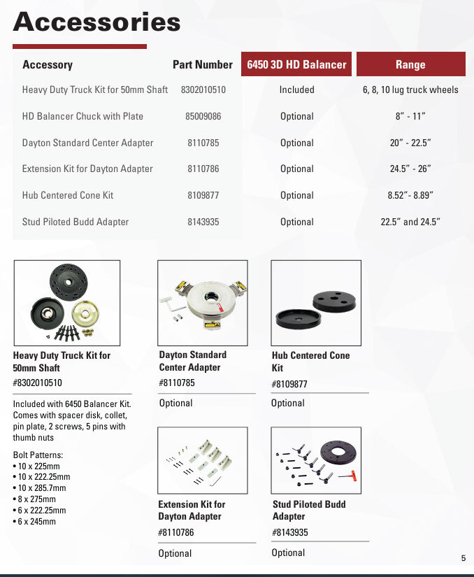 - Heavy Duty Truck Kit (Part#8302010510) for 50mm Shaft lets you confidently and accurately center large 6, 8, and 10 lug truck wheels, including hub and stud piloted wheels, so you get accurate balancing results the first time, every time.