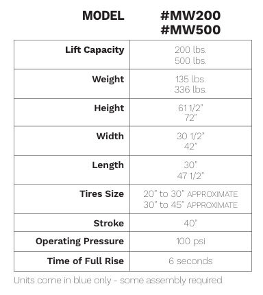 This mobile wheel lift can remove and position any size wheel or tire weighing up to 500 pounds, making it much easier and ergonomic for technicians to work on heavy-duty trucks, buses, and construction equipment.